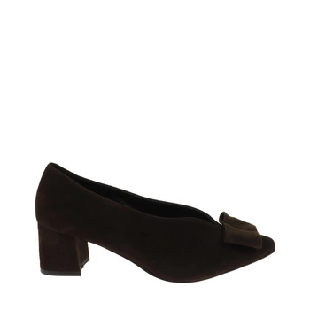 Eleganckie brązowe zamszowe czółenka z ozdobą