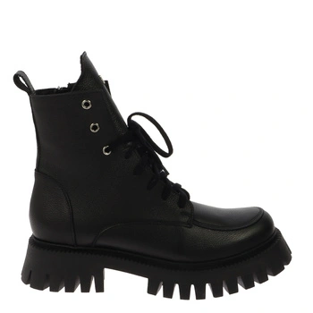 Czarne skórzane trapery na wysokim spodzie