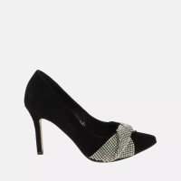 Czarne lakierowane półbuty z koralikami na grubej podeszwie