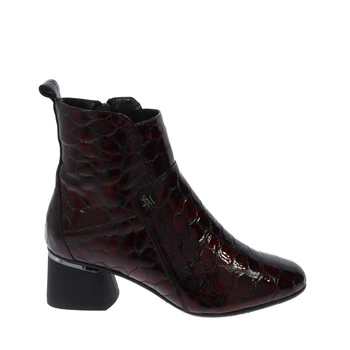Bordowe eleganckie botki z lakierowanej skóry