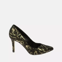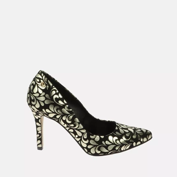 Czarne zamszowe czółenka z ozdobnym obcasem