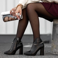 Czarne klasyczne skórzane botki na obcasie z opcjonalnym łańcuszkiem