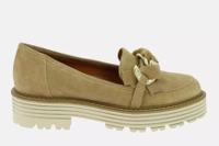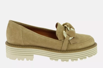 Granatowe mokasyny damskie eleganckie na spodzie z łańcuchem