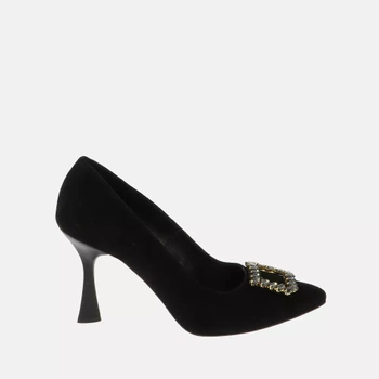 Czarne zamszowe szpilki z ozdobą