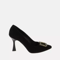Czarne welurowe półbuty damskie z łańcuchem