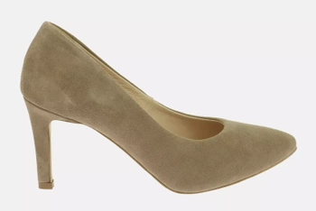 Karmelowe skórzane szpilki z oblekanym obcasem
