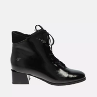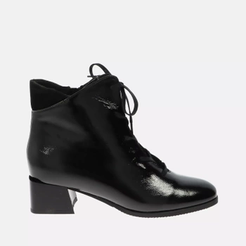 Czarne lakierowane półbuty z koralikami na grubej podeszwie