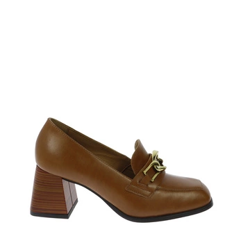 Karmelowe szpilki z obcasem w kolorze drewna