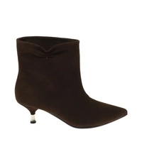 Zamszowe botki w kolorze czekolady na niskim obcasie