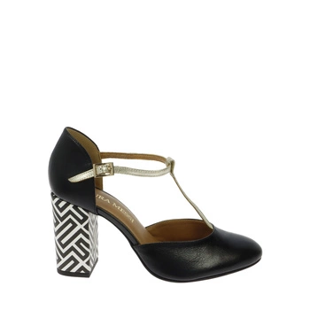 Czarno złote eleganckie sandały na szpilce