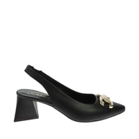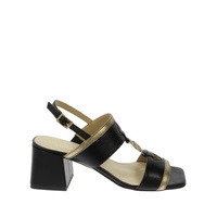 Czarne sandały na ozdobnym, trójkątnym obcasie