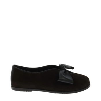 Brązowe zamszowe półbuty z ozdobną kokardką