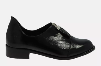 Granatowe mokasyny damskie eleganckie na spodzie z łańcuchem