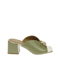 Zielone klapki ze złotymi ozdobami na klocku