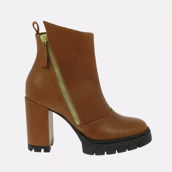Rude skórzane botki z ozdobnym zamkiem