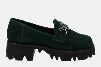 Beżowe welurowe półbuty z łańcuchem