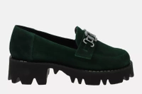 Granatowe mokasyny damskie eleganckie na spodzie z łańcuchem