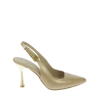 Złote klasyczne wysokie szpilki ze skóry naturalnej