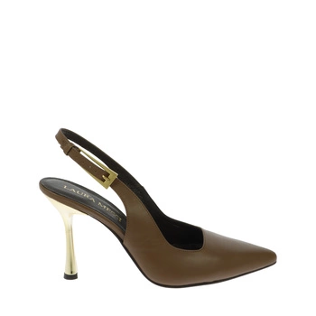 Karmelowe skórzane szpilki z oblekanym obcasem