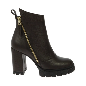Brązowe skórzane botki z ozdobnym zamkiem
