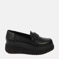 Czarne mokasyny z ozdobą na masywnym spodzie