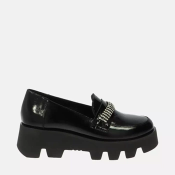 Czarne lakierowane mokasyny z ozdobą na masywnym spodzie