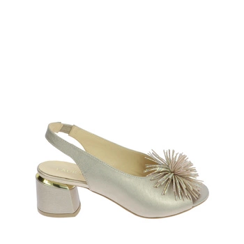 Złote sandały na klocku z ozdobą