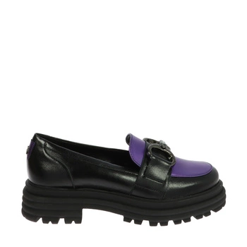 Czarno fioletowe półbuty na masywnym spodzie