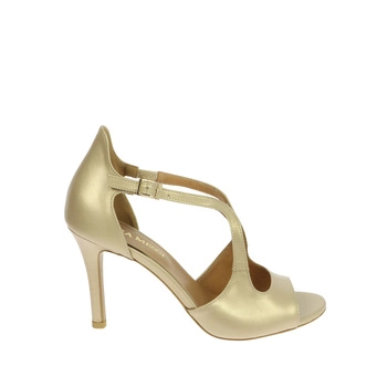 Złote perłowe skórzane sandały