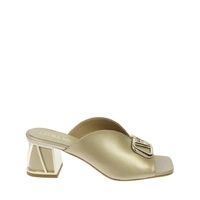 Złote klapki ze złotymi ozdobami na klocku