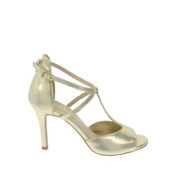 Złote skórzane sandały na szpilce
