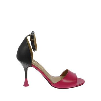 Czarno różowe eleganckie sandały na szpilce