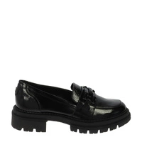 Czarne lakierowane eleganckie mokasyny na masywnym spodzie