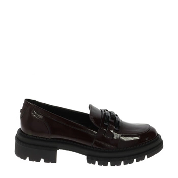 Bordowe lakierowane eleganckie mokasyny na masywnym spodzie