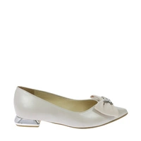 Beżowe skórzane eleganckie balerinki z kokardką