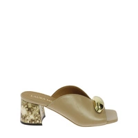 Karmelowe skórzane klapki z ozdobnym obcasem