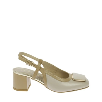 Beżowe skórzane sandałki na wygodnym klocku