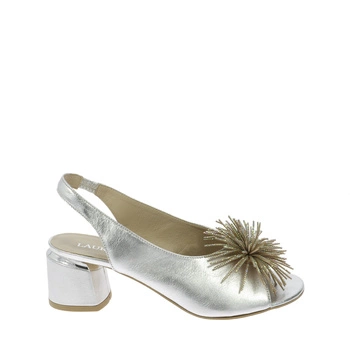 Srebrne sandały na klocku z ozdobą