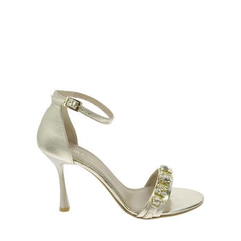 Złote sandały na szpilce z ozdobnym paskiem