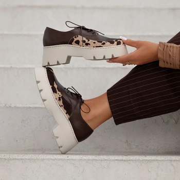 Modne brązowo-beżowe wiązane półbuty